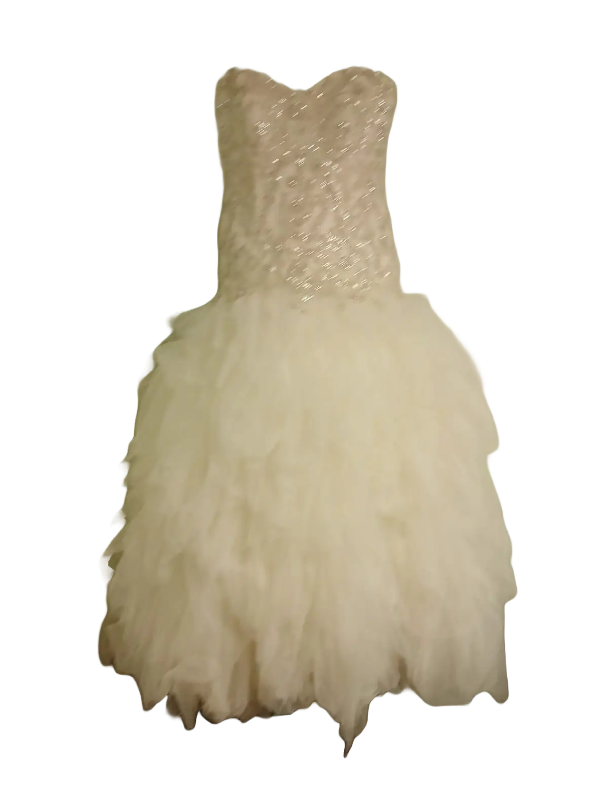 This strapless beaded bodice wedding dress comes in a size 14.